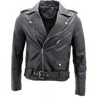 The iconic Brando jacket once again meets our premium full grain nappa leather in this eye-catching piece. Notched wide set lapels, shoulder epaulettes and an adjustable waist belt, all contribute towards making this a highly stylish piece. A slanted zip pocket is positioned across the jacket breast, with additional flap and zip pockets located at the waist and in the jacket interior. This jacket appears in earthy tan which makes for a great colourway when creating Autumn outfits and in black when you'...