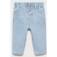 Mango Younger Girls Paperbag Waist Jeans Size & Fit True to size - order your usual size Available in sizes 9-12 months - 5-6 years Details Younger Girls Paperbag Waist Jeans by Mango Light Blue Paper bag waist Button front fastening Front and back five pocket Straight cut Elasticated waistband Material & Care Material Content: Composition: 100% Cotton Washing Instructions: Machine Washable