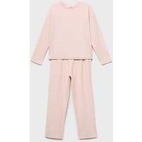 Mango Girls Long Sleeve Ribbed Pyjamas Size & Fit True to size - order your usual size Available in sizes 5-6 years - 13-14 years Details Girls Long Sleeve Ribbed Pyjamas by Mango Light Pink Ribbed fabric Long sleeves Round neck Straight cut Elasticated waist with drawstring fastening Side slip pockets Material & Care Material Content: Composition: 95% Cotton, 5% Elastane Washing Instructions: Machine Washable - Manufacturers part number: WO2IG