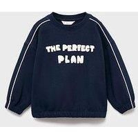 Mango Younger Boys Perfect Plan Co-Ord Sweat Size & Fit Regular fit Available in sizes 9-12 months - 5-6 years Details Younger Boys Perfect Plan Co-Ord Sweat by Mango Navy Long sleeves Crew neckline Printed slogan Side stripe detail Matching joggers available separately, search WNY8E Material & Care Material Content: Composition: 100% Cotton Washing Instructions: Machine Washable Matching joggers available under WNY8E
