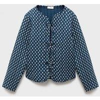 Mango Girls Printed Jacket Size & Fit True to size - order your usual size Regular fit Available in sizes 6 years - 13-14 years Details Girls Printed Jacket by Mango Navy Collarless neck Long sleeves Tie front fastening Quilted fabric Patterned Material & Care Material Content: Composition: 100% Cotton Lining: 100% Cotton Filling: 100% Polyester Washing Instructions: Machine Washable