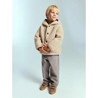 Mango Younger Boys Borg Hooded Coat Size & Fit Available in sizes 9-12 months - 5-6 years Details Younger Boys Borg Hooded Coat by Mango Beige Cosy Borg texture Long sleeves Fixed hood Button front fastening 2 front patch pockets Material & Care Material Content: Composition: 100% Polyester Lining: 100% Polyester Piping: 100% Cotton Washing Instructions: Machine Washable - Manufacturers part number: WQQCE