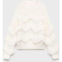 Mango Girls Fringe Knitted Jumper - Light Cream