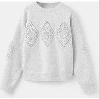 Mango Girls Sequin Diamond Knitted Jumper - Grey