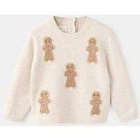 Mango Younger Girls Gingerbread Man Knitted Jumper - Beige