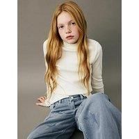 Mango Girls Turtle Neck Long Sleeve T-Shirt - Light Cream