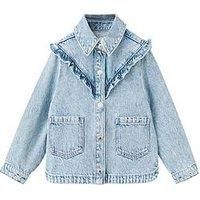 Mango Younger Girls Frill Denim Jacket - Light Blue