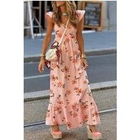 Set out elegance and charm in this Pink Floral V Neck Smocked High Waist Ruffle Hem Long Dress. The flutter sleeves and v-neck add extra coolness and sexiness. Featuring a smocked bodice high waist and ruffled maxi length this floral maxi dress is perfect for holidays parties ceremonies and more. | Everyday The Label Women's Pink Floral V Neck Smocked High Waist Ruffle Hem Long Dress | Size: Small