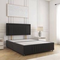 BSSPOKE Lily Plush Velvet Divan Bed 24" Headboard & No Mattress No Drawers in Black | Size: King