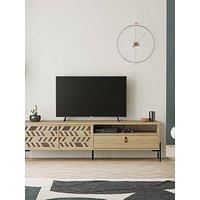 Decortie Dionysos TV Stand - Oak Elevate your living room decor with the Decortie Dionysos Modern TV Stand, designed to be both stylish and functional. This multimedia centre features a unique design with laser-cut sliding doors that add a contemporary touch, making it the focal point of any modern home. With an open compartment and one drawer, it provides ample storage space for all your media essentials. The metal legs not only enhance its stability but also add a chic and modern aesthetic. Available ...