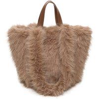 This fluffy tote is designed to bring both comfort and style to your everyday look, offering a plush texture that feels as cozy as it looks. Its clever reversible design allows you to switch things up effortlessly, using the inside as the outside for two distinct styles in one bag. Spacious yet chic, its the perfect blend of function and playful elegance. | Fontanella Fashion Women's Eloria Sparkling Fluffy Reversible Top Handle Shoulder Bag in Brown - Manufacturers part number: Fontanella Fashion_8683769840593