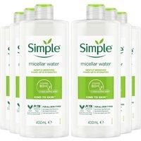 Simple Water Boost Micellar Cleansing Water gently yet effectively cleanses and removes impurities and make-up from your face, whilst also soothing and instantly re-hydrating thirsty skin. Skin feels refreshed, supple, and instantly hydrated without irritation. Simple Water Boost Micellar Cleansing Water contains no colour or dyes, harsh chemicals or artificial perfume, making it perfect for dry, dehydrated or even sensitive skin. Infused with skin-loving minerals and a plant extra, Cleansing Water contains micellar cleansing bubbles that glide skin, attracting make-up and dirt without leaving skin feeling dry or tight. | Simple Kind to Skin 'Make-Up Remover' Micellar Cleansing Water, 6 Pack, 400ml in Clear - Manufacturers part number: Simple_8710908371493