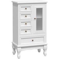 This cabinet, with an antique design, is a great organiser in the office, living room, bedroom, etc. It will surely make a great addition to your bedroom, study, or even hallway. The five drawers are designed to store your books, clothes and other items. With two large display shelves, there is plenty of room for extra storage and displays, and the acrylic door is ideal for keeping away dirt and dust. The cabinet is constructed from MDF and pinewood with a white painted finish for durability, which will... - Manufacturers part number: 241150
