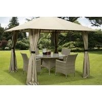 Garden Gazebos: Get a 3m x 3m gazebo marquee and transform your garden. Easy To Assemble: This marquee requires no tools for assembly and only takes 15 minutes to assemble. Simply just clip the items together then tighten the clamps and your gazebo will be ready to use straight away! Features: This gazebo features a waterproof roof as well as full side curtains that can be closed in the evening to keep warmth in. Material: Roof material features 180 gsm polyester with a waterproof PA coating, and the po...