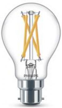 Philips B22 8W 806lm A60 Warm white LED Dimmable Light bulb.This Bayonet cap (B22) A60 LED light bulb has a 8W power consumption and gives off a warm white light.