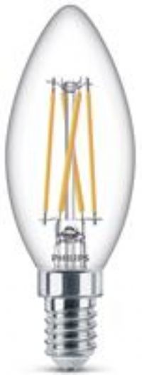 E14 LED candle lamp 4.5 W in filament technology from Philips, WarmGlow The clear LED candle lamp with filament optics is equipped with the WarmGlow function. The light can be dimmed with many commercially available dimmers and becomes warmer (2,700 to 2,200 K) with the dimming process. This lamp meets the EyeComfort criteria developed by Philips, it produces a very pleasant light that is easy on the eyes.