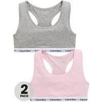 Calvin Klein Girls Bralettes Size & Fit Available in ages: 8 - 16 years Details Girls 2 Pack Bralettes by Calvin Klein Grey/Pink Comfy and supportive, these girls bralettes by CK are made from a quality cotton fabric that's been enhanced with a splash of stretch for day-long comfort. A pack comprises one grey bralette and one pink version. Each one is contrasted by white trim that's branded with classy Calvin Klein detail. Material Machine Washable Material Content: 95% Cotton, 5% Elastane Washing Ins... - Manufacturers part number: MUY4D
