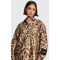 Alix the Label Jaguar Oversized Blouse Size & Fit True to size - order your usual size Oversized fit Available in sizes: XS: 6; S: 8; M: 10; L: 12; XL: 14 Details Jaguar Oversized Blouse by Alix the Label Brown Cut from a shiny woven fabric designed with a big jaguar print all over Featuring an 'ALIX THE LABEL' artwork on the sleeve and on the back Full button closure at front Long sleeve Pocket at the chest Cold handwash Material & Care Material Content: 100% PL