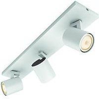 Versatile Philips Hue LED spotlight Runner with three rotating and swivelling LED spots and practical dimmer switch A white, elongated metal frame and three cylindrically shaped LED spots, which are already fitted with three White Ambiance GU10 LED lamps on delivery, form the LED ceiling spotlight Runner. The integrated Hue lamps have the innovative ZigBee standard, so that the connection to a smart home system is no problem. After successful integration into a compatible system using the appropriate bridge (see accessories), the Runner ceiling light can now be controlled with the free Hue app or a compatible voice wizard. In order to create the right light at any time in everyday life, the white tones can be individually adjusted and also programmed in time in a spectrum from warm white to daylight. Via the app, the 3er Spot Runner can even be controlled on the move. Those who prefer to operate without the Internet can do so using the Hue dimmer switch supplied. This allows the light ... - Manufacturers part number: 929003046201