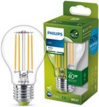 LED filament lamp E27 2.5W EyeComfort, 3,000K This Philips LED filament lamp is a sustainable and efficient bulb that produces high luminaire luminous flux with a low power consumption - the world's first A-label LED lamp and the most energy-efficient lamp from Philips. Designed with LED filaments in clear glass, the lamp is particularly well suited for open luminaires. It meets the EyeComfort criteria developed by Philips and provides lighting that is easy on the eyes. The lamp also features an extremely long service life of up to 50 years with a daily burning time of 3 hours a day compared to around 35 years for conventional LED lamps and an energy saving of 60% compared to previous LED lamps. Technical data: - extremely energy efficient with 194 lm/W - lifetime 50.000 Special features: - beautiful optics thanks to LED filaments and clear glass bulb - very long lifetime reduces waste - new technology from Philips reduces carbon emissions and energy consumption