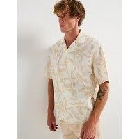 Calvin Klein Revere Collar Printed Linen Short Sleeve Shirt - Light Beige Material & Care Material Content: 55% Linen 45% Cotton Washing Instructions: Machine Washable