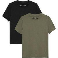 Calvin Klein Jeans Boys 2 Pack Short Sleeve Logo T-Shirts Size & Fit Regular fit Available in sizes 8 years - 16 years Details Boys 2 Pack Short Sleeve Logo T-Shirts by Calvin Klein Jeans Multi Logo print Short sleeves Crew neck Multipack Material & Care Material Content: 100% Cotton Washing Instructions: Machine Washable