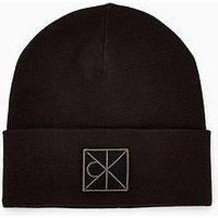 Calvin Klein Embelished Patch Ribbed Beanie - Black Material Content: VISCOSE (72%), RECYCLED POLYESTER (28%)