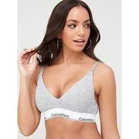 Maternity bra by Calvin Klein Cute and comfortable V-neck Lightly-padded cups Drop-down clips ideal for nursing Supportive, branded underband Hook-and-eye closure Designed to fit you from bump to baby