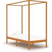 Introduce a touch of elegance to your bedroom with our timeless solid wooden canopy bed frame! The bed is smartly designed with a top frame for hanging your favourite curtains, which adds a unique charm to your bedroom, while creating extra privacy. Made of solid pine wood, this bed frame is exceedingly sturdy and durable. The strong slats offer the needed support and highly comfortable. This bed frame is suitable for a mattress of 90 x 200 cm. Please note that delivery includes a bed frame only; a matt...