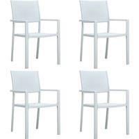 Our durable plastic chairs will make a great addition to your garden, terrace or patio. The outdoor dining chairs are made of durable plastic, which makes them weather resistant and easy to clean. Their rattan look design adds a touch of natural charm to your outdoor living space. With a sturdy steel frame, the chair set is highly stable. Additionally, the chairs are lightweight and easy to move around. Delivery includes 4 chairs. Features: Colour: White Material: Plastic + steel Dimensions: 58.5 x 53.5... - Manufacturers part number: 47888