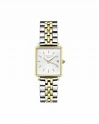 The Boxy XS is part of Rosefields signature watch collection. The fan favourite square silhouette is even more delicate at 22mm. The classic details remain rounded edges, steel and leather strap options, plus a date function. This is seriously retro with its Silver Dial and Two-tone Bracelet. Watch features:Analogue display. Silver dial. Case width 24mm. Brass case. Two tone coloured stainless steel adjustable bracelet. 18mm lug width. Battery power. Quartz movement. Water resistant to 30m. Fixed bezel....