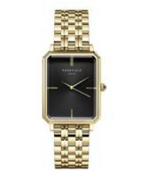 The Rosefield Octagon is the newest collection of modern watches, an instant classic. The rare octagonal face shape and polished 5-link bracelet recall 1920s elegance, redefining the watch as a fashion accessory. Stunning black dial and gold IP bracelet. Watch features:Analogue display. Black dial. Case width 29mm. Brass case. Gold coloured stainless steel adjustable bracelet. 18mm lug width. Battery power. Quartz movement. Water resistant to 30m. Fixed bezel. General information:Total weight of product...