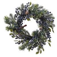 Create a nature-inspired look for your home this festive season with the Kaemingk Everlands frosted blue berry wreath. Packed full of realistic faux blue berries, cinnamon sticks and fir branches, the Christmas wreath is completed by a lught dusted of faux frost for a wintery finish. Suitable for both indoor and outdoor use, the wreath is ideal for dressing your front door but can also be used in hallways and other areas of the home. Once unpacked, take time to fluff up and reposition the branches as so...