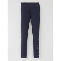 Tommy Hilfiger Kids Essential Leggings Size & Fit Available in ages: 4 - 16 years Details Kids Essential Leggings by Tommy Hilfiger Navy Add a sporty feel to their capsule collection Comfortable stretch waist Wear-with-anything shade Tommy branding to the leg Material & Care Material Content: 95% Cotton, 5% Elastane Washing Instructions: Machine Washable