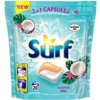 Surf Coconut Bliss 3 in 1 Washing Capsules feature even more fragrance* so you can indulge your senses in the uplifting fragrance blend inspired by lush, tropical beaches and exotic getaways paradise in a tub! The delightful fusion of creamy coconut with the sweet and warm notes of vanilla, amber and musk will transport you to a blissful paradise. You can rest assured that your clothes will be brilliantly clean and fresh for longer with these laundry capsules from the UK's no.1 fragrance detergent bran...