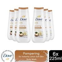 Dove Advanced Care Pampering Body Wash Body Cleanser shower gel with a shea butter & vanilla scent for instantly lotion-soft skin 6x 225 ml