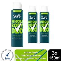 Sure Men Active Fresh Whole Body Deodorant Men/'s Deodorant Spray with a herbal, citrus & woody fragrance for 72 hour odour control 150 ml