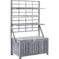 This versatile storage box provides storage space and offers place for your plants and flowers. This cushion box is made of solid acacia wood, a hardwood with dense grains. This beautifully designed box is stable, durable and eye-catching. The exquisite craftsmanship and beautiful wood grains make every piece slightly different from the next. The integrated trellis offers excellent support for climbing plants. You can also place flower pot on the shelves. The included 4 shelves can be adjusted in positi... - Manufacturers part number: 311882