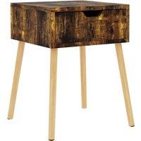 vidaXL Bedside Cabinet with Drawer in Smoked Oak, Designed for Living Room and Bedroom, Scandinavian Style Engineered Wood Side Table
