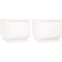 These wooden bedside cabinets exude a touch of modern charm and makes an excellent addition to your current room decor. The bedside tables are made of solid pinewood, making them durable and sturdy. As a universal cabinet, you can put your magazines, books, remote controls and other small items well organised and within reach. Upgrade your interior with these elegant side tables! Features: Colour: White Material: Solid pinewood Dimensions: 35 x 34 x 32 cm (W x D x H) Assembly required: Yes Delivery cont... - Manufacturers part number: 813398