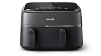 Philips Dual Basket Airfryer 3000 Series, 9L, 2 Drawer Air Fryer, Rapid Air Technology, Versatile Large Air Fryer for Family, 90% Less fat and Energy Saving, HomeID App (NA350/00)