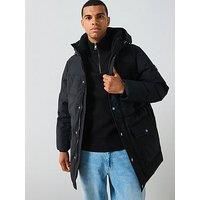 Tommy Hilfiger Rockie Utility Parka Size & Fit Regular fit Longline length Available in sizes S - 3XL (S:36"-38", M: 40", L:42", XL:44", 2XL:46", 3XL:48") Details Rockie Utility Parka by Tommy Hilfiger Black Cotton blend Water repellent Down-filled Non-removable toggle cord hood Concealed zip with snap-button closure Rib-knit inner cuffs Two chest slip pockets Two front envelope pockets One interior zipped pocket Rubberised Tommy Hilfiger logo patch on sleeve Tommy Hilfiger branding Material & Ca...
