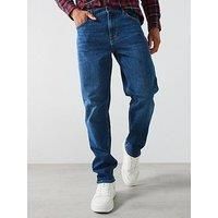 Tommy Hilfiger Harlem Stretch Regular Tapered Jeans Size & Fit True to size - order your usual size Relaxed fit Tapered fit Available in sizes 30 - 40 Details Harlem Stretch Regular Tapered Jeans by Tommy Hilfiger Dark Blue Cotton denim with a hint of stretch denim Zip with button closure Five-pocket styling Tommy Hilfiger branding Tommy Hilfiger flag embroidery on back pocket Material & Care Material Content: 99% Cotton 1% Elastane Washing Instructions: Machine Washable