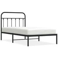 vidaXL Single Steel Bed Frame with Supportive Headboard and Extra Storage Space, Black, For Bedroom