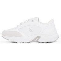 Calvin Klein Jeans Retro Tennis Trainers Size & Fit True to size - order your usual size Standard fit Available in sizes 36 - 42 (EU 36:UK 3, EU 37:UK 4, EU 38:UK 5, EU 39:UK 6, EU 40:UK 7, EU 41:UK 8, EU 42:UK 9) Details Retro Tennis Trainer by Calvin Klein Jeans White Smooth faux leather upper Signature CK branding detail Lace up fastening Round toe Chunky rubber sole Material & Care Material Content: 60% Polyester, 40% Polyurethane Washing Instructions: Wipe Clean