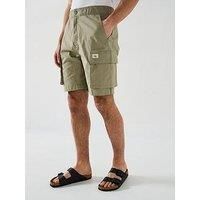 Calvin Klein Jeans Washed Cargo Short Shorts Size & Fit True to size - order your usual size Available in sizes 30 - 38 Model is 6'2"" and wears a size Medium (M) Details Washed Cargo Short Cargo Shorts by Calvin Klein Jeans Beige Cargo style Button front Elasticated waist Twin side and back pockets Twin cargo pockets Embroidered logo to leg Material & Care Material Content: 97% Cotton 3% Elastane Washing Instructions: Machine Washable