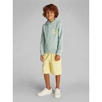 Calvin Klein Jeans Boys Chest CK Graphic Hoodie Size & Fit Regular fit Available in sizes 8 years - 16 years Details Boys Chest CK Graphic Hoodie by Calvin Klein Jeans Green Graphic print logo Long sleeves Material & Care Material Content: 100% Cotton Washing Instructions: Machine Washable