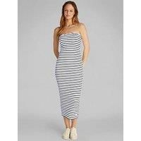 Calvin Klein Jeans Label Logo Ribbed Bandeau Dress Size & Fit True to size - order your usual size Regular fit Midi length Available in sizes XS - XXXL Details Label Logo Ribbed Bandeau Dress by Calvin Klein Jeans White Strapless bandeau dress Striped Ribbed fabric Material & Care Material Content: 94% Cotton, 6% Elastane Washing Instructions: Machine Washable