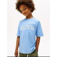 Tommy Hilfiger Boys Th Mixed Graphic Short Sleeve T-Shirt Size & Fit Regular fit Available in sizes 4 years - 16 years Details Boys Th Mixed Graphic Short Sleeve T-Shirt by Tommy Hilfiger Blue Printed and embroidered logo Short sleeves Crew neck Material & Care Material Content: 100% Cotton Washing Instructions: Machine Washable