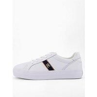 Tommy Hilfiger Sneaker Size & Fit Standard fit Available in sizes 36 - 42 (EU 36:UK 3, EU 37:UK 4, EU 38:UK 5, EU 39:UK 6, EU 40:UK 7, EU 41:UK 8, EU 42:UK 9) Details Sneaker by Tommy Hilfiger White These low-top trainers feature smooth leather uppers accented with a glossy TH monogram plaque sitting on signature webbing strips. Napa leather upper Rubber outsole TH monogram plaque on upper Tommy Hilfiger embossed logo on heel Tommy Hilfiger branding Material & Care Material Content: COW NAPPA LEATHER (1...